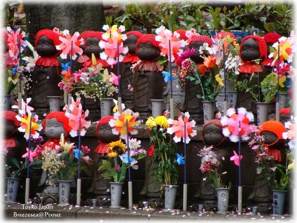 增上寺中的菩薩娃娃 每一個都貼心的幫衪們戴了帽子
