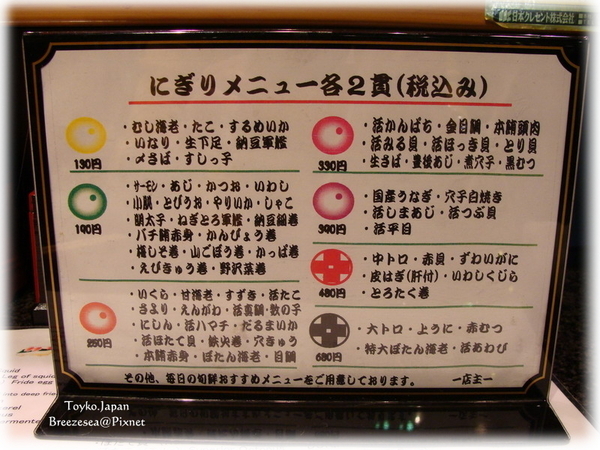 Menu~有計費方式, 可以跟師傅點菜, 就像我們台灣的爭鮮, 不過還是日本的壽司好吃!