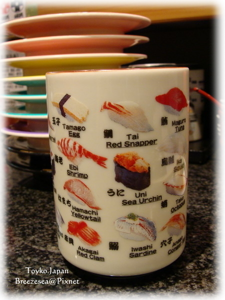 說比杯子上的壽司, 他就能現做給我們呢~